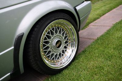 KW Gewinde 2 i.V.m. BBS 2tlg. rundum 8x15 mit 195/45/15 neu poliert, Schrauben vergoldet, goldenes BBS Logo |