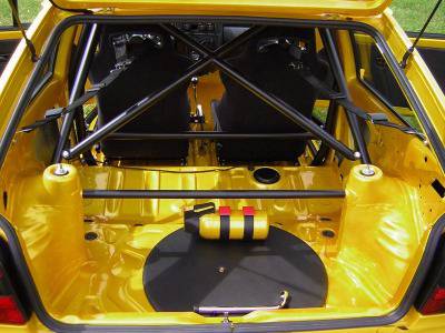 Komplett gecleant, gekürzte Kennzeichenaussparung, Audi-Griffe, Hauptnähte nachgeschweisst, Domstreben eingeschweisst, Einarmwischer, Radläufe gezogen, Wichers Käfig, Eigenbau Spiegel |