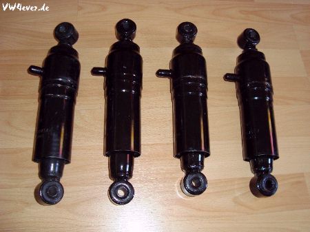 | Die Schalteinheit inkl. dem zusätzlichen Radio für die versteckte Hifi-Anlage kamen im Handschuhfach unter. Das original Blaupunkt Frankfurt Radio ist natürlich weiterhin funktionstüchtig ;o) Und die neuen Dämpfer, ein großer Unterschied zu den Originalen ist es nicht ;o) | ![]() |
