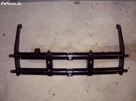 Da ja nun alle Teile bereit lagen, konnte der Fahrwerksumbau beginnen. Als ersten wollte ich an der Hinterachse die Drehstäbe verstellen, naja es blieb erstmal beim wollte! Leider waren die Schwerter mit den Drehstäben festgerostet (der einzigste am Käfer auffindbare Rost). Nachdem ich glücklicherweise zeitnah an gebrauchten Ersatz kam ging es weiter. Die Federschwerter mussten für die angepeilte Tiefe erstmal modifiziert werden ;o) Danach wurden sie noch schwarzlackiert. Wieviel genau sie als tiefster Punkt verstellt wurden kann ich leider nicht mehr genau sagen, schätzungsweise irgendwas knapp an 3 Außenzähnen. Die Achsrohre liegen jedenfalls an den Heizbirnen an :o) |