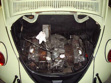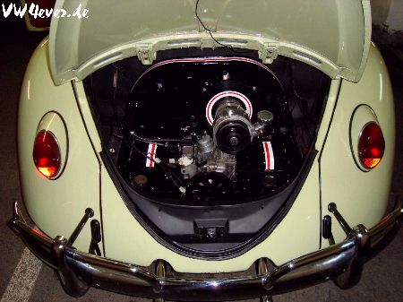 Nun musste nur noch der Motor optisch auf Vordermann gebracht werden, bei dem hässlichen Orange bekam man ja Augenkrebs! Was auch immer da den Vorbesitzer geritten hat, das musste weichen! Also erstmal alles zerlegen um die Motorverblechung auszubauen, Käfermotorschrauben ist ja wirklich wunderbar einfach :o) So sah es dann erstmal aus, ebenfalls für gut befunden... |