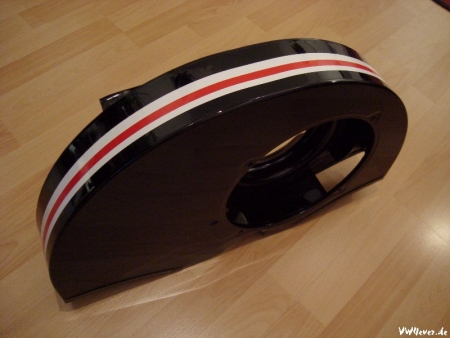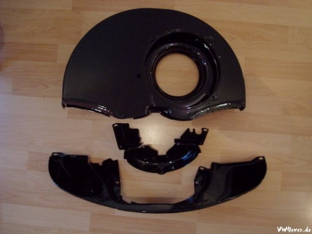 Da eh geplant war die Heizung rauszuschmeißen entschied ich mich für einen 30PS-Style Gebläsekasten und ein cleanes Abschlußblech. Also erstmal glanzschwarz lackieren das Ganze... |