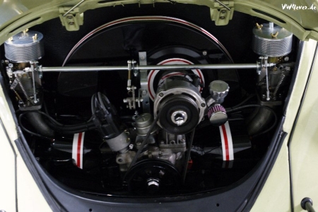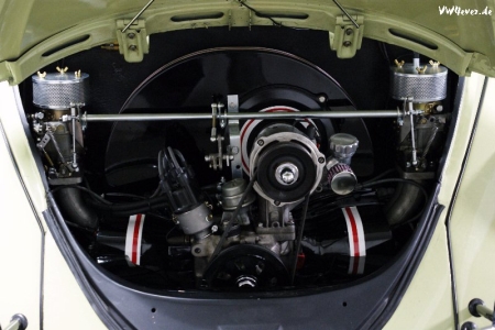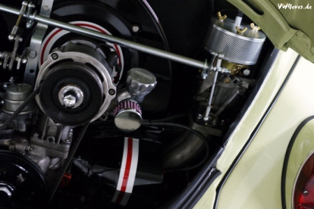 Wenn man schon mal dabei ist, soll natürlich alles sauber aussehen und verlegt sein. Also wurde die Zündspule noch versteckt und sämtliche Kabel verlängert und versteckt verlegt. Man sieht lediglich die Zündkabel (Bosch Silikon) und die Spritleitung! Dazu kam noch ein neuer originaler Bosch 009 Verteiler.