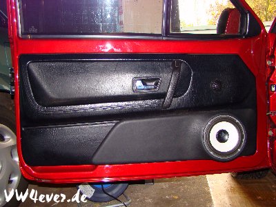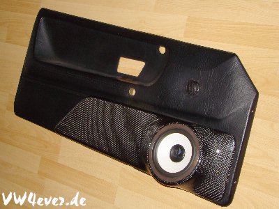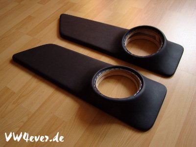 | Für das Frontsystem habe ich extra Doorboards angefertigt worin wieder mein altes 2-Wege System Einzug fand. Hier die Bilder der fertigen Doorboards und des fast fertigen Ausbaus! Bezogen mit schwarzem Leder, der asymmetrsiche Ausschnitt mit weißem Leder... | ![]() |