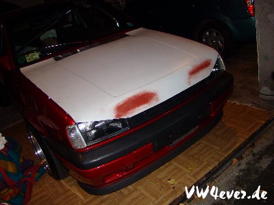 | Dafür hab ich die Zeit noch genutzt und den Motorraum in Seidenmattschwarz lackiert, so ist momentan der Stand der Dinge! Das bekomm ich schon wieder hin ;o) | ![]() |