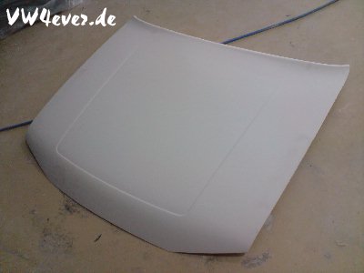 | Die alte Haube musste ebenfalls weichen, diesmal ohen Haubenspiegel und auch hier wieder etwas weniger Gewicht! Bei der neuen wurde der böse Blick noch etwas verlängert und die Lüftungsschlitze verschlossen für eine rundum cleane Optik! | ![]() |