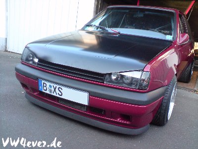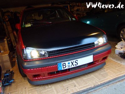 | Ja ihr seht richtig, die Haube ist schwarz, um genau zu sein seidenmattschwarz! :o) Nicht jedermanns Geschmack aber das muss es ja auch nicht... Passend dazu ein neues Kennzeichen XS eben! :o) | ![]() |