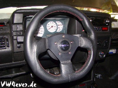 | Es sind mehr Details die geändert werden, zB selbiges Lenkrad mit schwarzer statt silbener Speiche sowie goldenen Schrauben, ein neues (altes) Radio Pioneer DEH-P9400MP :o) | ![]() |