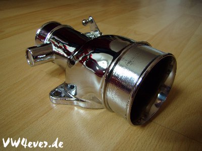 Die neue komplett aufgefräste und bearbeitete Drosselklappe in kompletten Chromgewand... Unten: Racelook-Streifen, goldene Regel: was man außen anfängt sollte man innen fortsetzen ;o) |