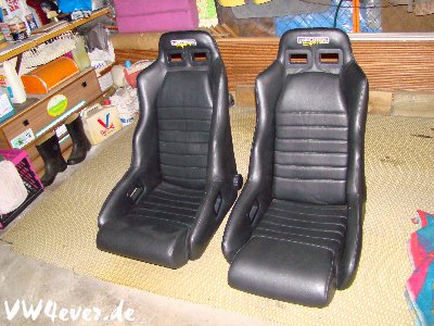 Die neuen, Wiechers Vollschalen Kunstleder Sitze! Meine alten Konsolen musste ich leicht modfizieren, die tiefe Sitzposition blieb ;o) Probesitzen, passt! |