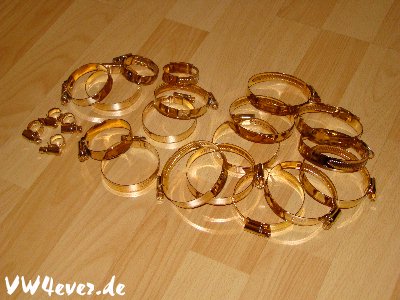 | Dazu noch einen Haufen Goldschellen (und Chromschrauben), sowie ein zusätzliches Pop Off (Apexi Twin Chamber), Bi-Pop-Off eben ;o) mal sehen wie klingt! Und da Kopf und Turbo ja eh unten ist hab ich den kurzerhand nochmal aufpoliert. | ![]() |