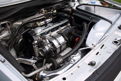 kompletter Hifi Showeinbau in GFK und Leder, Motorraum chrom/gold, neues Ladeluftsystem aus Alu poliert, "geringe" Leistungssteigerung |