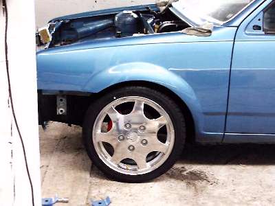 Umbau auf 1,5 Liter Block durch geänderten Kurbelwellenhub, Übermaßkolben, RS Lager, verstärkte Ölpumpe, G40 Ansaugbrücke geweitet und geglättet, Drosselklappe auf 50 mm Innendurchmesser aufgehohnt sowie das dazugehörige Oberteil, G60 Einspritzdüsen, 50mm Ladeluftrohre, HKS SSQV Blow-Off, einst. Bezindruckregler, Turbokrümmer, KKK 03 Turbolader, Ladeluftkühler nach Maß (geht über komplette Wagenfront), erleichterte Schwungscheibe, Sachs Sportkupplung mit Druckplatte, K&N Filter 57i |