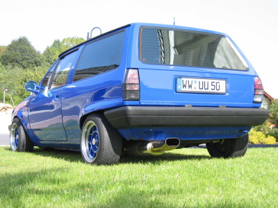 gecleantes Heck, Audi-Türgriffe ohne Schlösser, M 3 Look Spiegel, Grill ohne Emblem, schwarze Rückleuchten, klarglas Frontblinker , geänderte Scheinwerfer, Grillspoiler, Audi A4 Seitenblinker, Radläufe rundum bearbeitet, Glasgravur, Airbrush |
