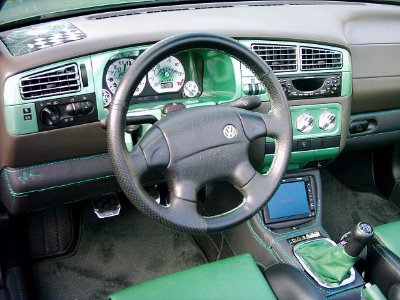 Komplette Innenausstattung umgebaut auf Golf 4 Recaro Colour Concept grün/schwarz, Sitzheizung, viele lackiert eoder mit Leder bezogene Teile, Aluparts |