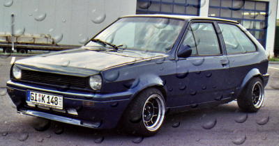 Rundum Golf 1 Radläufe, Lufteinlässe an der HA, Böser Blick, Haube ohne Wischerdüsen, Alle Löcher geschlossen (Heckklappe Plastik usw.), Geänderte Kpu Stossfänger VA HA, Kpu Spiegel, Audi Griffe, Color Vergassung |