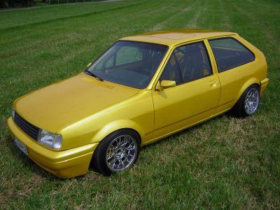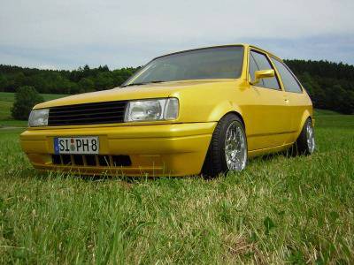 Komplett gecleant, gekürzte Kennzeichenaussparung, Audi-Griffe, Hauptnähte nachgeschweisst, Domstreben eingeschweisst, Einarmwischer, Radläufe gezogen, Wichers Käfig, Eigenbau Spiegel |