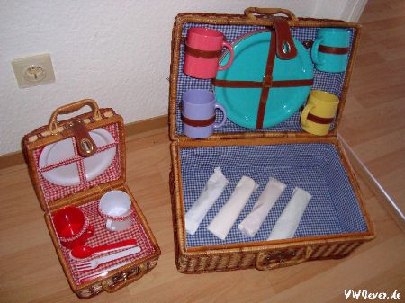 | Gerade noch dran gedacht und schon waren sie da, originale Albert Hooded Spiegelköpfe für die Schwanenhalsarme. Außerdem für den großen bzw. kleinen Hunger zwischendurch, zwei Picknick-Körbe. | ![]() |