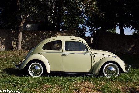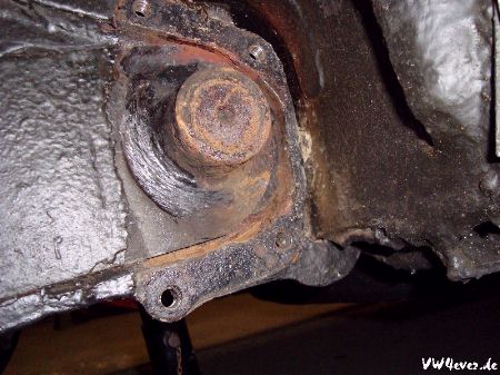 Da ja nun alle Teile bereit lagen, konnte der Fahrwerksumbau beginnen. Als ersten wollte ich an der Hinterachse die Drehstäbe verstellen, naja es blieb erstmal beim wollte! Leider waren die Schwerter mit den Drehstäben festgerostet (der einzigste am Käfer auffindbare Rost). Nachdem ich glücklicherweise zeitnah an gebrauchten Ersatz kam ging es weiter. Die Federschwerter mussten für die angepeilte Tiefe erstmal modifiziert werden ;o) Danach wurden sie noch schwarzlackiert. Wieviel genau sie als tiefster Punkt verstellt wurden kann ich leider nicht mehr genau sagen, schätzungsweise irgendwas knapp an 3 Außenzähnen. Die Achsrohre liegen jedenfalls an den Heizbirnen an :o) |