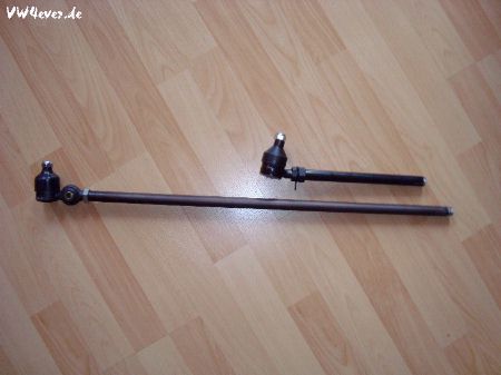 | Vorne ging es natürlich gleich weiter. Eine kurze Achse musste her, also baute mir ein Freund eine Achse genau nach meinen Vorstellungen, das absolute Maximum was ohne Karosserieänderungen möglich ist, dürften ca 8cm sein. Dazu kamen natürlich noch Tieferlegungsachsschenkel und neue gekürzte Spurstangen ;o) | ![]() |