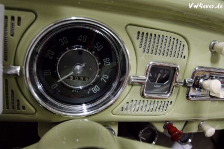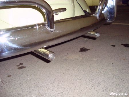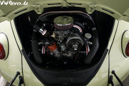 | Da ich die ersten Wochen noch ein wenig mit der Betty um die Häuser gezogen bin hielten sich die Modifikationen in Grenzen. Also erstmal ein offener K&N Filter drauf und TDE Rohre für besseren Abzug und Klang ;o) Keine Angst das hässliche orange wird noch weichen! Die 1. Teile flatterten auch schon ins Haus, umgearbeitete 52mm VDO Anzeigen im Original Käfer-Tacho-Look! | ![]() |
