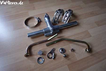 | Die 1. Teile lagen auch schon bereit, darunter neue original VW Heizbirnen (schwarz lackiert), neue Zündkerzen, Dichtungen, VA Muttern/Schrauben, diverse kleine Chromteile, eine schicke Ansaugbrücke und so weiter! Da die Teile noch ein paar Tage auf sich warten ließen entschied ich mich doch noch die Ansaugrohre zu cleanen und auf Hochglanz zu bringen ;o) | ![]() |