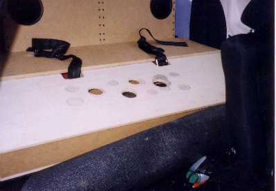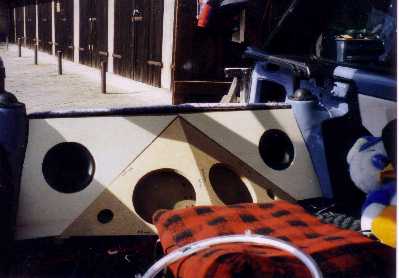| Für den nötigen Schalldruck wurde das Heck komplett für die Musikanlage genutzt, hier seht ihr Bilder der ersten Ausbaustufe... |