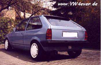 | Um auch Außen noch etwas mehr auf sich aufmerksam zu machen, verbaute ich einen Grill ohne Emblem und 6" x14" Pirelli Felgen mit 185/50. Vorn 10mm und hinten 30mm Spurplatten je Seite... |