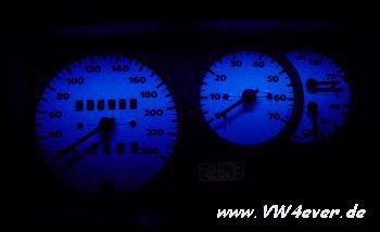 Da alle anderen Teile schon poliert wurde, blieb der Lüfter auch nicht verschont ;o) Naja, und da ich bei WEIß bleiben wollte, bekam der Tacho weiße Folien von MHW, sowie eine blaue Beleuchtung für die Nacht. |
