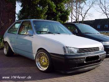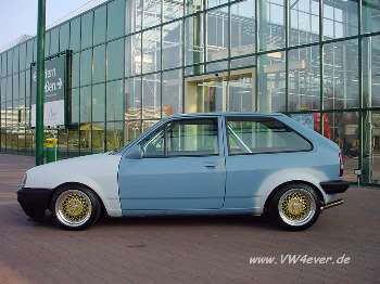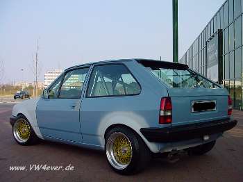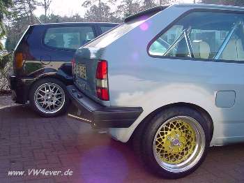 Nun sollte er seinen neuen Schuhe bekommen, Originale BBS Rennsportfelgen 3.-Tlg!!! Sowie einen bösen Blick aus Metall... |