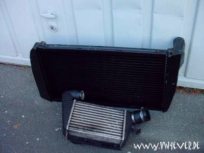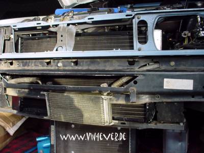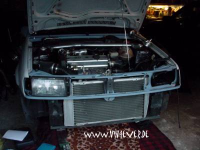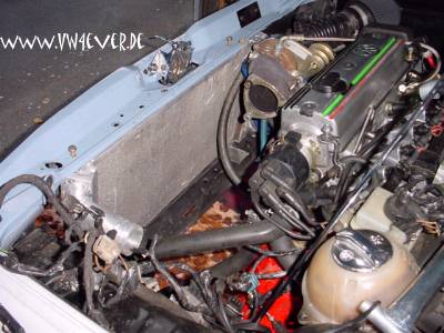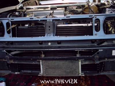 Erstmal musste der komplette Vorderwagen wieder zerlegt werden... (der neue Motor lief schon problemlos) Danach wurde der neue LLK erstmal angepasst, das war an manchen Stellen gar nicht so einfach. Die gesamte Traverse musste