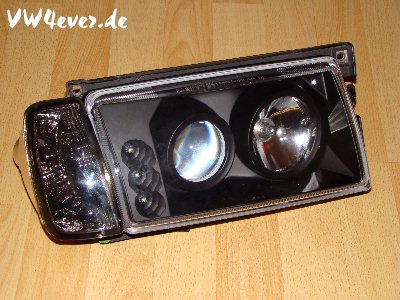 Zur neuen Haube und dem neuen Konzept passten die schwarzen Klarglasscheinwerfer sowie Blinker perfekt! NuSkool-Racer... ;o) |