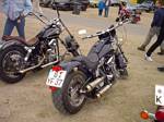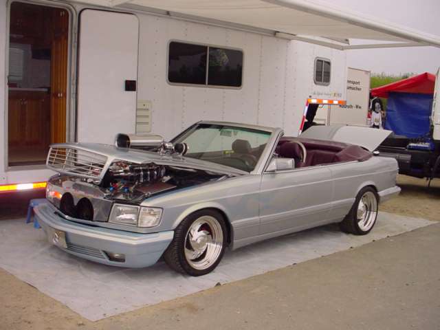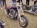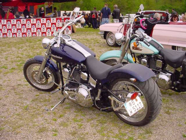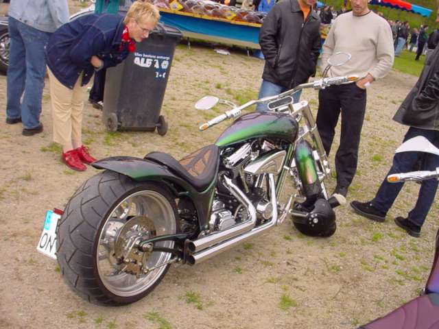 Auch dieses Jahr fand wieder das American Car and Harley Festival statt! Leider war das Wetter nicht so toll, aber wenigstens hat es nicht geregnet. Es waren wieder viele sehenswerte US-Cars dabei, was die Bikes angeht war der Andrang nur begrenzt, nun ja das wird am Wetter gelegen haben! Wo man auch hinschaute geballte V8 Power. Man kann sagen von 300 - 900 PS war alles vertreten. Egal ob Lowrider, natürlich mit Speichenfelgen und etlichen Goldplates, Hot Rods aus den 30ern oder Musclemachines, alles war dabei. Die Krönung war aber wohl ein alter 500er Benz Cabrio mit einer Spezialanfertigung von V8 Motor, es handelte sich dennoch um einen Mercedes Motor! Nach ein wenig Fachsimpeln, kam der Schock, sämtliche Teile waren Spezialanfertigungen, die notariell beglaubigt werden mussten, TEUER würde ich sagen, aber das Beste kommt noch! Satte 842 PS auf der Rolle, wow!!! Und wenn man den Wagen sieht (Bilder siehe unten), einfach nur krass. Jeder kennt sie, jeder liebt sie, Flip-Flop Lacke. Diese Lacke nehmen jetzt auch bei extremen Harley Freaks überhand. Super Optik, mit TÜV?! Lange Rede kurzer Sinn, Bilder sagen mehr als alle Worte der Welt! Viel Spass...